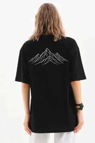Nihilist Penguen Özel Tasarım Oversize Bisiklet Yaka Tişört Siyah